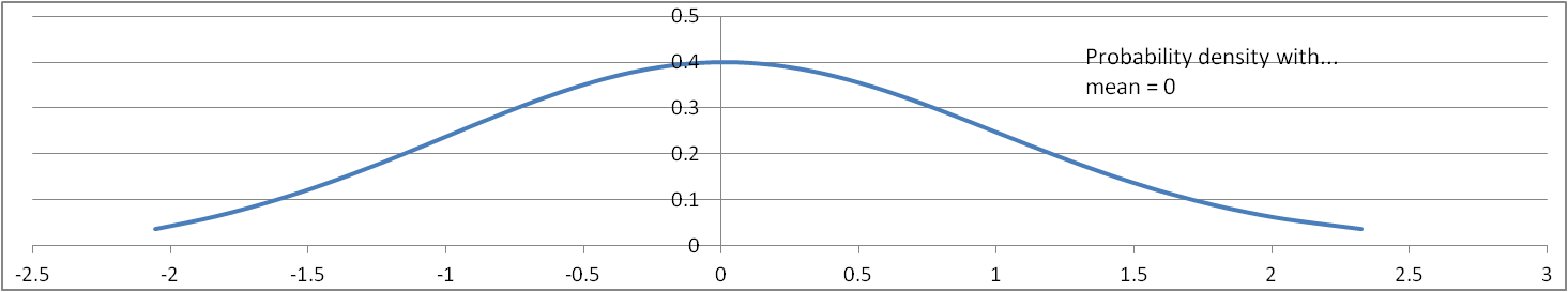 Just to show the general shape, the height of the “bell curve” on the right, is proportional to the probability of values more negative or positive than its central zero value, based on a standard deviation of 1.